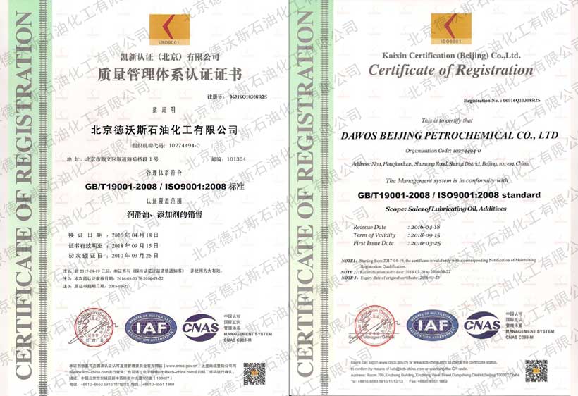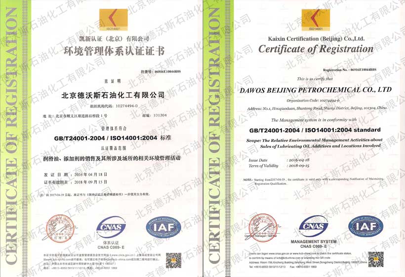 ? ? ? ? 2010年3月25日,北京德沃斯石油化工有限公司通過(guò)了ISO9001國(guó)際質(zhì)量管理體系認(rèn)證和ISO14001國(guó)際環(huán)境管理體系認(rèn)證。德沃斯將為廣大客戶提供更加優(yōu)質(zhì)的產(chǎn)品和國(guó)際化服務(wù)。(證書以更新為最新)